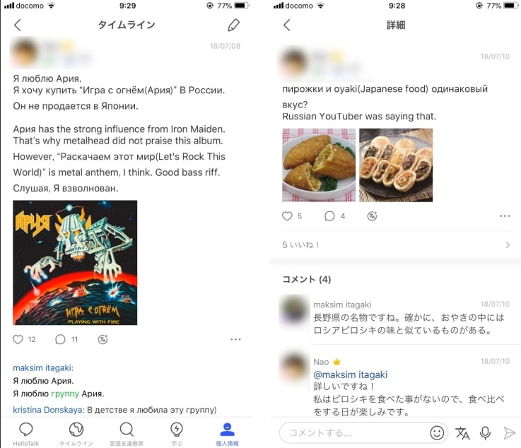 私は、Twitter/Facebook/Instagramなどの様々なSNSと同じで、**「モーメントで他の人から"いいね"や”リプライ”を貰う」**と嬉しいです。HelloTalkのモーメントは、基本的にTwitterのツイートと同じ事が出来ます。