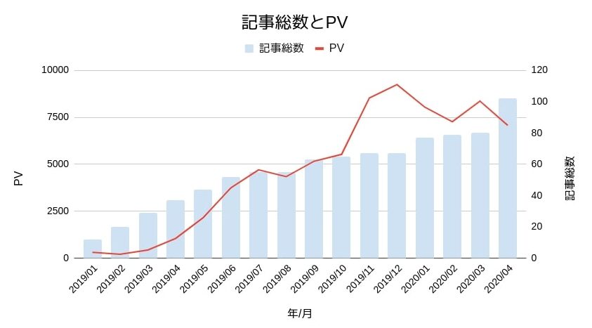 ちなみに、記事総数の停滞期間は、2019年7月から仕事が忙しかったから(年間残業が630時間だったから)。2020年4月に記事22本を書いた理由は、新型コロナウィルスの影響でテレワークが始まり、通勤時間がなくなったからです。