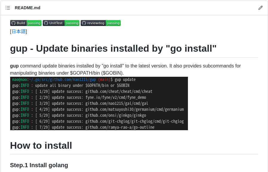 “go install"したバイナリをアップデートするgupコマンドが、公開から一週間でGitHub Starを50個以上獲得しました!ちょっと嬉しい。最新の仕様は、Zennで説明しています。