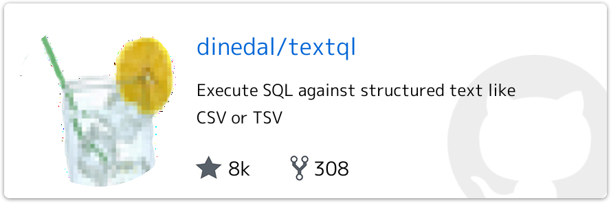 - CSV/TSV/LTSV/JSON/ASCIIテーブルのいずれかで、SQL実行結果を出力