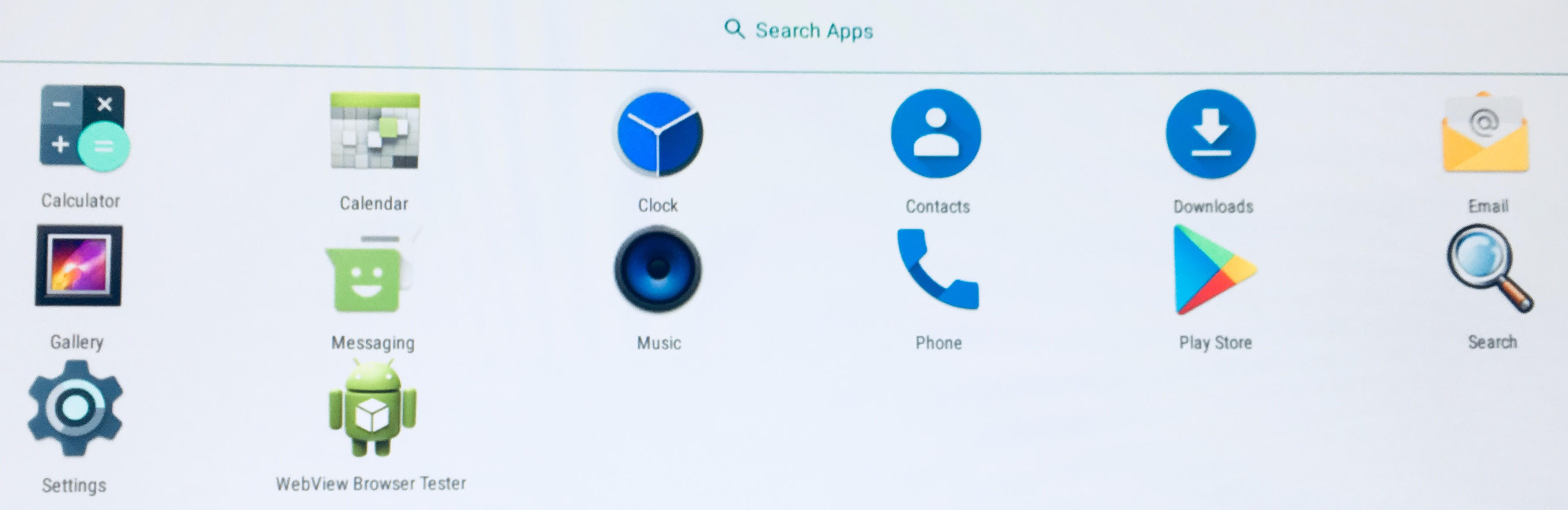 直撮り画像で申し訳ありませんが、初期アプリはこんな感じです。Raspberry Pi3でGoogle Play Storeがインストールできる事自体は素晴らしいけど、ダウンロードした他アプリが動作するかどうかは、また別の問題といった感じでした。