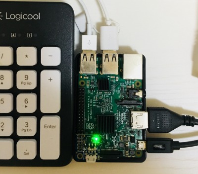有線接続時のIPアドレス確認方法が分からなかったため、無線接続での方法を記載します。まず、Raspberry Pi3に以下のデバイスを接続後、電源を投入します。