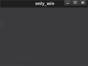 $ /usr/local/bin/only_win (注釈):only_winの実行。実行後、以下のウィンドウが表示されます。