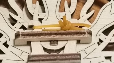 組み立てのコツは、全ての木材ハメ込み部分にロウを塗りたくり、滑りを良くする事です。説明書上は、可動部だけロウを塗れば良いと記載されています。しかし、木材のハメ込みは力がいりますし、ロウは沢山使っても余ります。作業を楽にするために、ロウを有効活用しましょう。