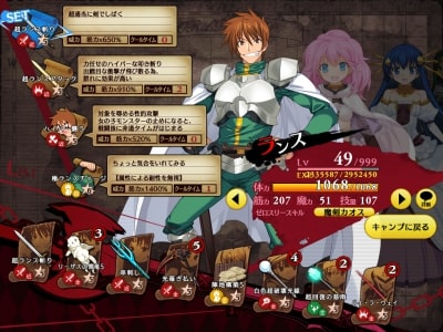 ランス03はキャラ人数が増えたので敵の行動も多彩になり、戦略性も増した印象。例えば、ザコ戦は全体攻撃持ちかつクールタイム回復を持つキャラで固める一方で、ボス戦は防御と回復が強いキャラを導入するなど、戦闘前から考える事が多いです。