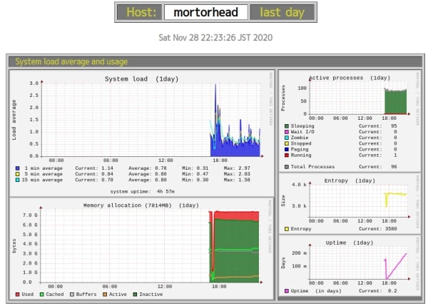 Monitorixは、軽量なシステムリソースモニタリングツールであり、Webブラウザ経由でリソースの使用状況を表したグラフを確認できます。Perlスクリプトで実装されており、Monitorixが生成するリソース監視ログ(rrdバイナリ)をrrdtoolでグラフ化(画像化)するという仕組みのようです。
