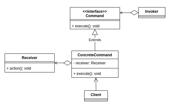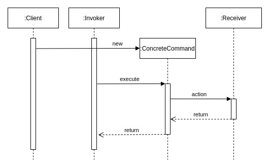 | ConcreteCommand | Receiverクラスのメソッドを用いて、Commandインターフェースのメソッドを実装します。 |