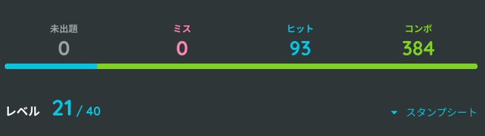 具体的には、2回目のテスト直前は以下の画像の状態です(模試1回しかしていないので、レベルが21以上に上がりませんでした)