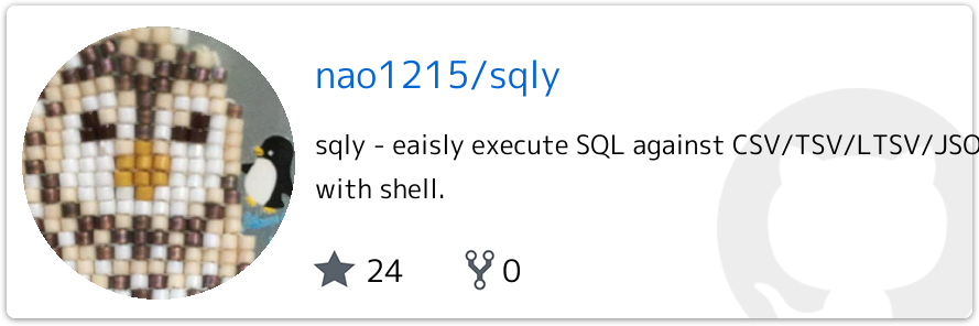 sqlyの使い方の詳細は、GitHubで確認してください。本記事では、簡単な使い方を紹介するだけとします。