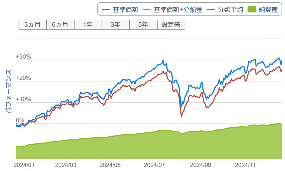 私が本格的に資金投入したのは、今年からです。家を買って、資産形成を真面目に考え始めたからです。株価や基準価額を毎日見ていました。上半期は右肩に上がり続けるチャート(下記の画像はオルカン)。そこから、8月に過去最大の下落幅で暴落。日銀が利上げを匂わすと、円キャリートレードの巻き戻しで、日本/アメリカの株が下落する流れを肌で体感しました。投資の世界は、要人の発言一つで大きく株価が変動するところまでは理解できました。しかし、株価/基準価額が上がるか下がるかは、予想通りにいかないものでした。好決算で株価下がるとか、もう何も分からん。