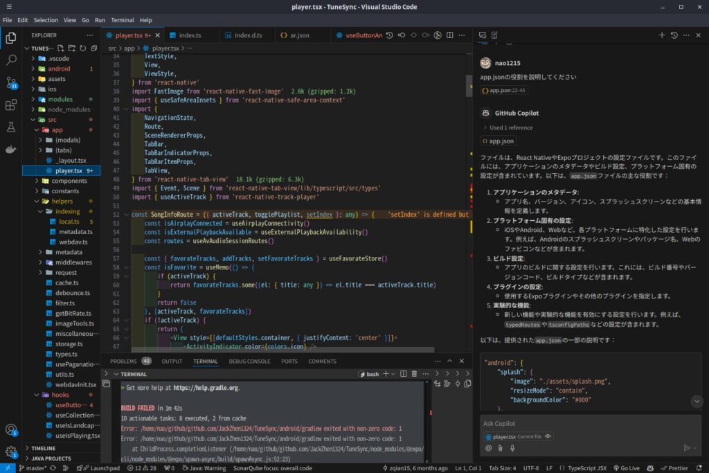 また、生成AIは、技術に対する理解度を上げるのに役立ちます。例えば、2023年の私はDomain Driven Designに関する理解が曖昧だったので、生成AIに様々な視点の質問を繰り返しました。その後、書籍と生成AIを組み合わせて学習することで、かなり理解度が上がりました。2024年はSoftware Designに寄稿する記事に対する技術的な指摘をChatGPTに任せましたし、2025年現在もReact NativeプロジェクトをVS Codeで開きながら、GitHub Copilotに学習補助してもらっています。