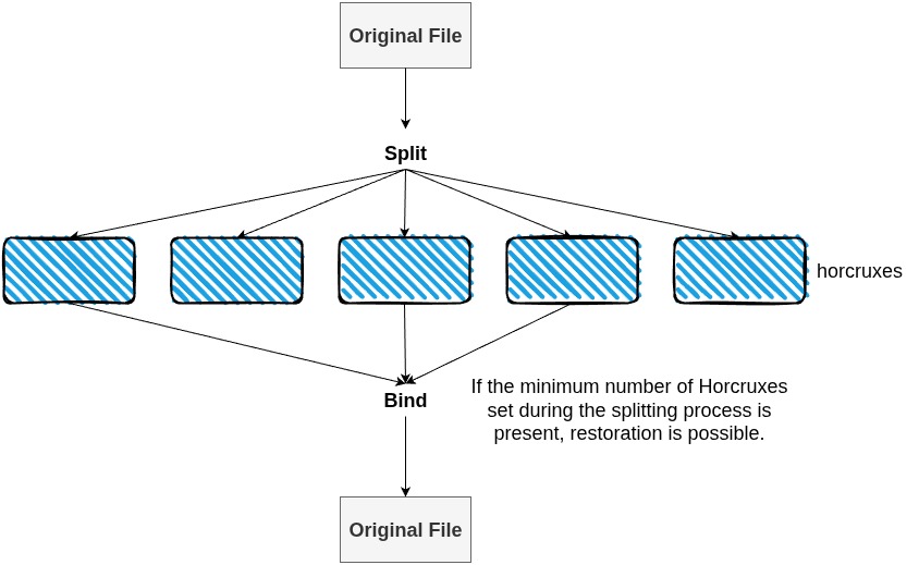 話を戻して、この魔法(?)からインスパイアを受けた CLI コマンドが既に存在し、 jesseduffield/horcrux として公開されています。horcrux コマンドは、ファイルをN個に分割し、M個のファイルがあれば元のファイルに復元できる機能を持ちます。作者は、lazygit の開発者です。余談ですが、私は horcrux コマンドからインスパイアを受け、「分割したファイルを結合すると、Capture The Flag (CTF) の答えが見つかる」というアイデアを会社で採用しました。